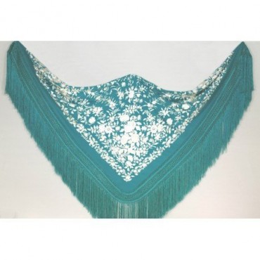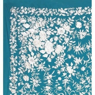 Mantón de fabricación propia en tela de crespón de alta calidad con bordado realizado a Máquina y flecos hechos a Mano. Muy elegante e ideal para eventos importantes. Peso aproximado 1,600 kg. Ref.: 3900