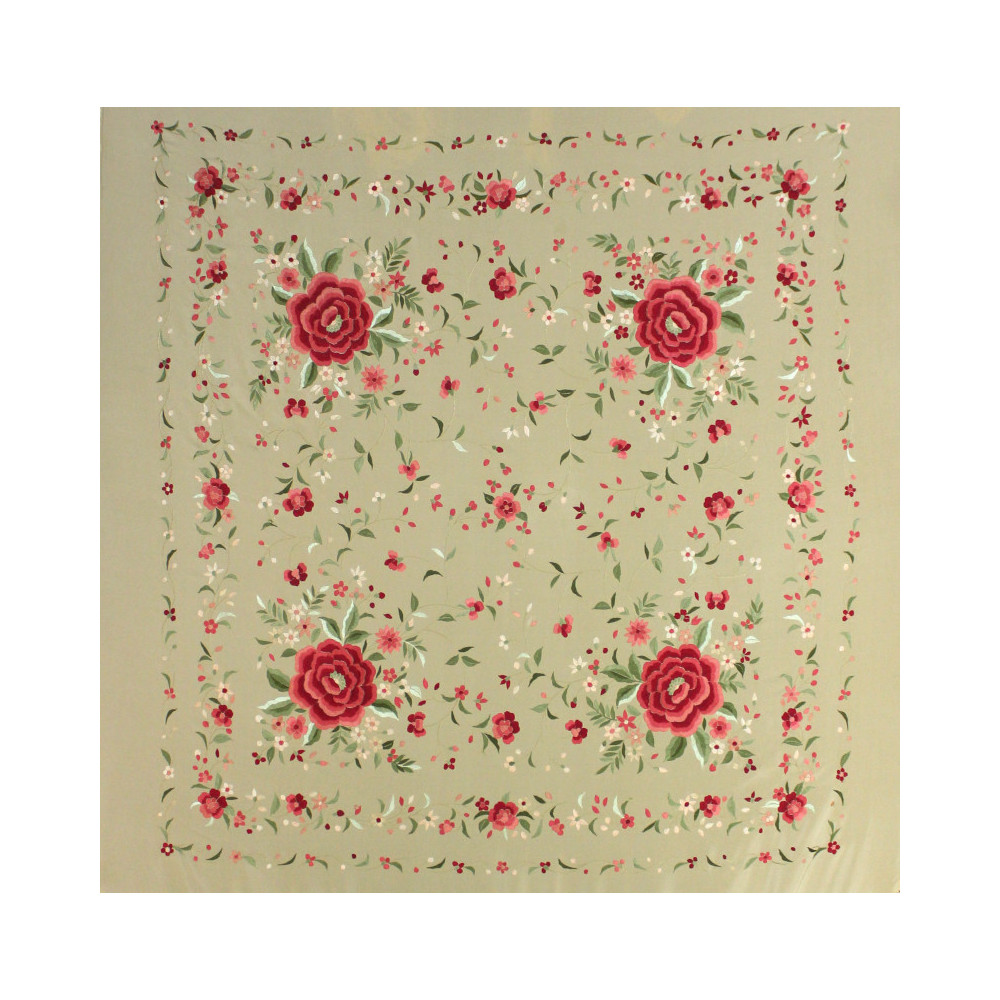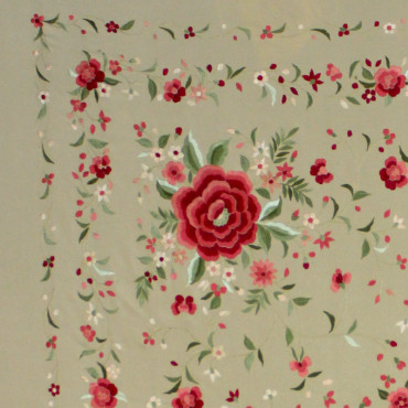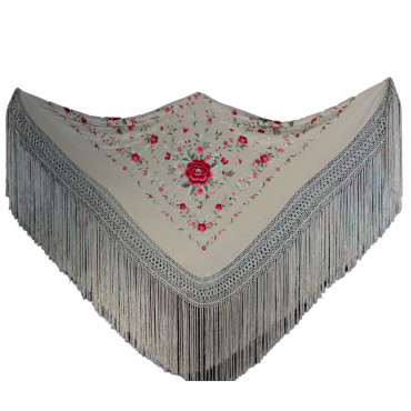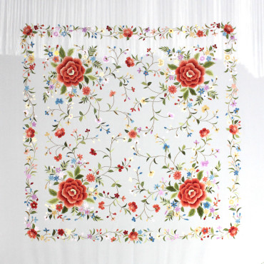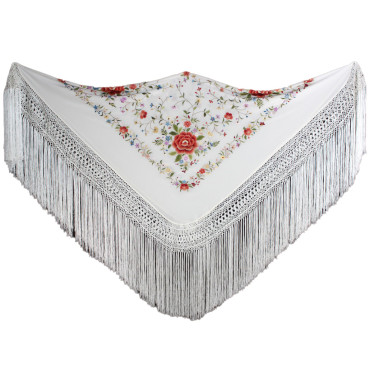 Espectacular mantón de seda natural bordado a mano, perfecto para baile o eventos.