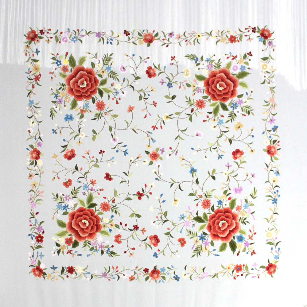 Mantón de seda natural bordado a mano. Perfecto para eventos como ferias y bodas o para baile con complementos, ideal para los primeros años que se comienza.
