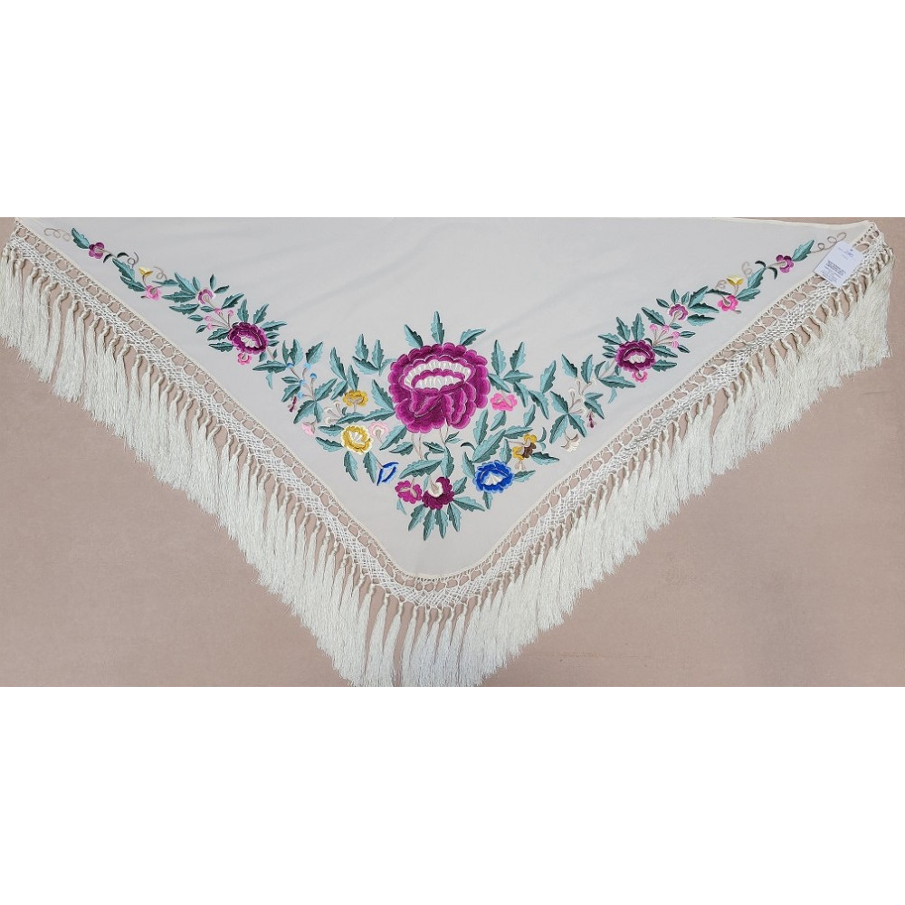 Mantoncillo fabricado en crespón y bordado a máquina.